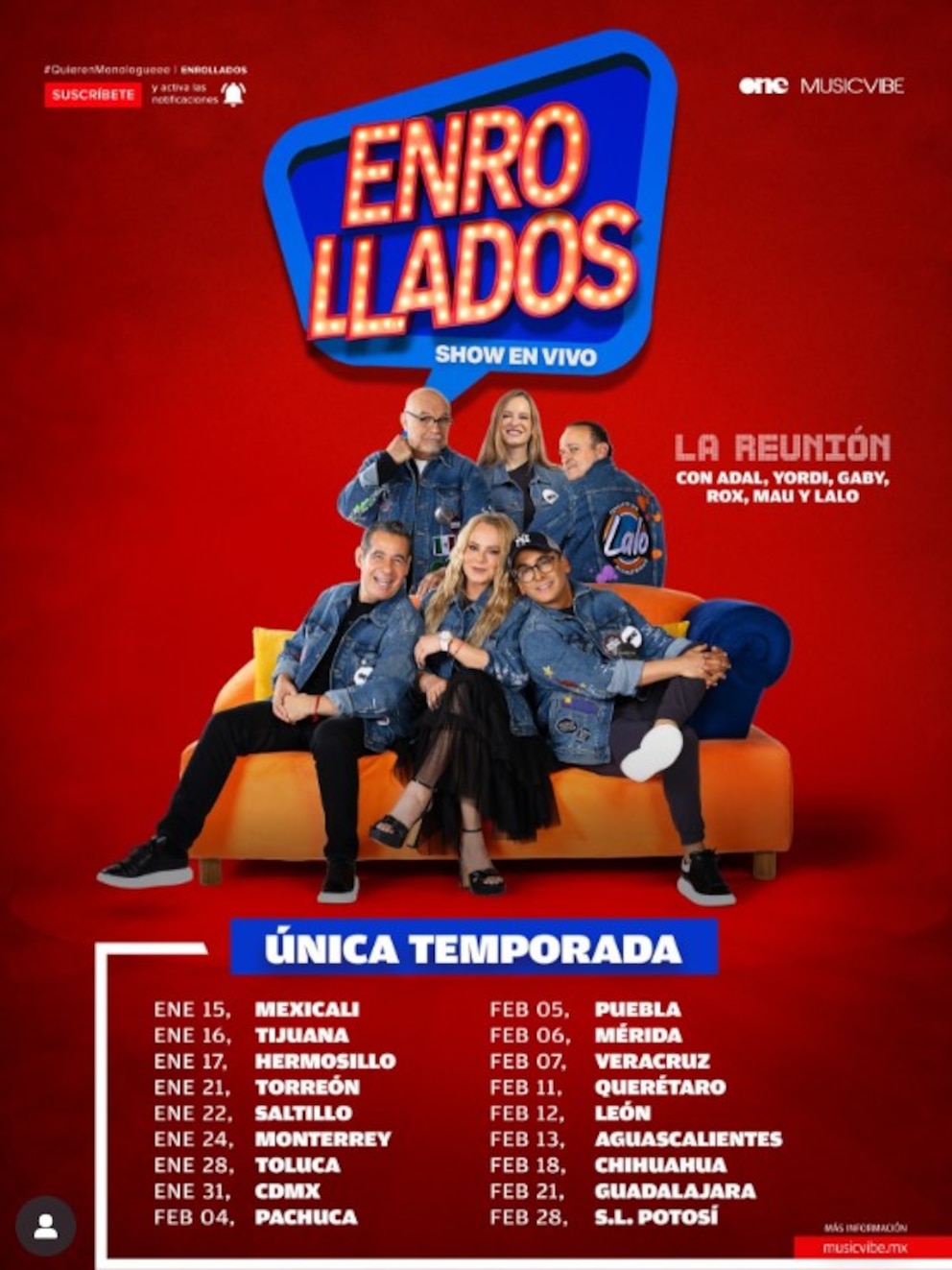 Después de 18 años sin presentarse juntos, Adal Ramones, Yordi Rosado, Roxana Castellanos, Mauricio Castillo, Gaby Platas y Lalo España anunciaron su reencuentro en Enrollados, Show en Vivo. Una gira que adaptará los segmentos más recordados de Otro Rollo para el teatro.