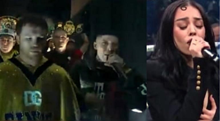 Santa Fe Klan acompañó al Canelo en su entrada y Danna cantó el Himno