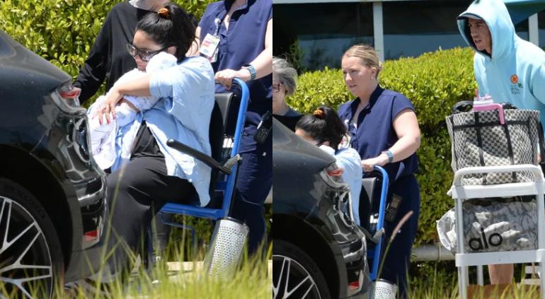 Si bien la actriz no ha dicho nada al respecto, el portal TMZ logró captar el momento en que ella salía en silla de ruedas con su bebé en brazos.
