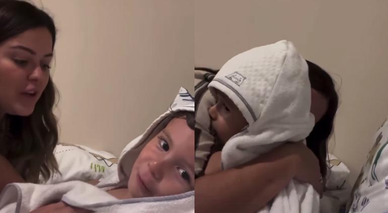 La también conductora le pidió a su hijo poner atención y escuchar atentamente sus palabras debido a que era la última vez que lo iba a bañar antes de irse a La Casa de los Famosos.