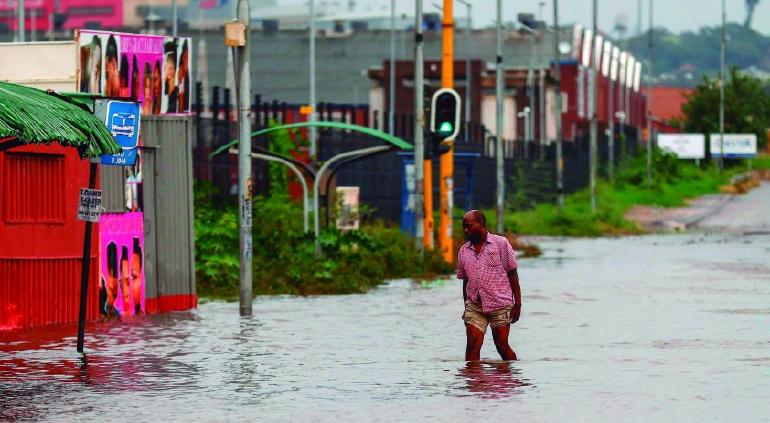 En Sudáfrica registraron fuertes lluvias provocando inundaciones y deslizamientos de tierra durante varios días en la costa este, lo cual alertó al Ejército.