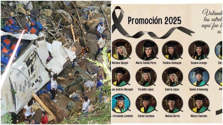 Un autobús con 45 estudiantes de 11° grado cayó por un barranco este domingo en Colombia, dejando al menos 16 muertos y 20 heridos.