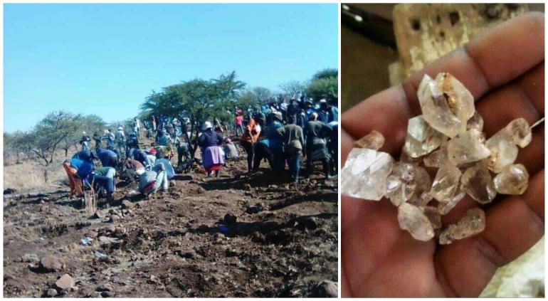 En un pueblo de la provincia de KwaZulu-Natalen (oriente de Sudáfrica), se reunieron grandes multitudes de personas con la esperanza de extraer posibles diamantes, después de hallazgo de aparentes piedras preciosas en la zona.