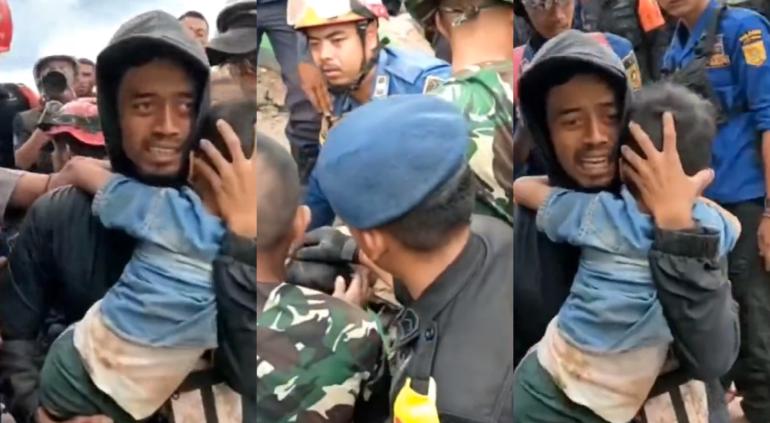 El video muestra como los rescatistas sacaron al menor de 5 años que sobrevivió al terremoto que sacudió Indonesia esta semana.