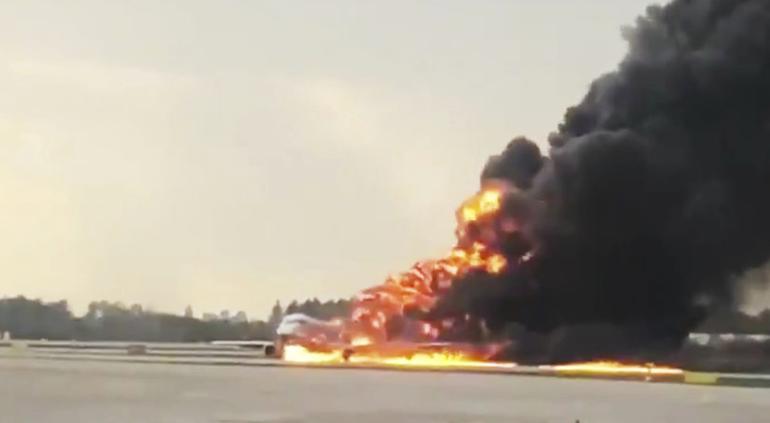 El avión de pasajeros Sukhoi Superjet 100 aterrizó de emergencia en el aeropuerto de Moscú este domingo pues estaba el llamas, el reporte de autoridades indica que una persona murió.