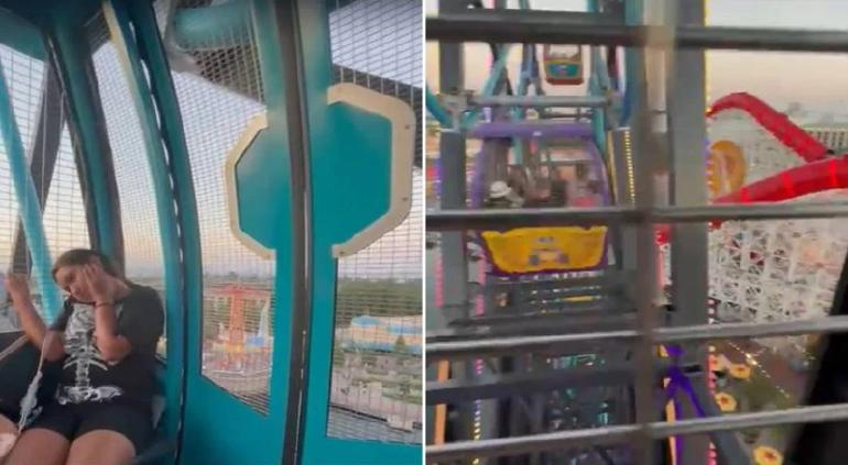 Los jóvenes esperaron 30 minutos para poder entrar al juego y justo cuando lo lograron y llegaron a la cima del mismo, la rueda de la fortuna se quedó parada. Al principio pensaron que era normal pero no fue así.