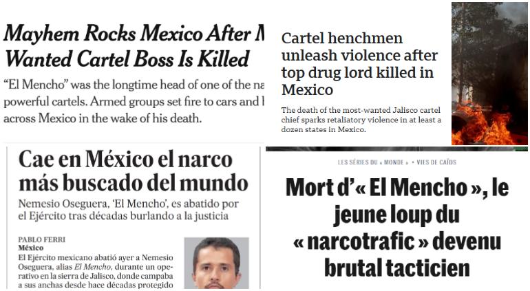 The New York Times (EE.UU.) indicó que "El Mencho" fue por mucho tiempo el líder de uno de los cárteles más poderosos de México y su asesinato llevó a México a una situación de gran tensión.