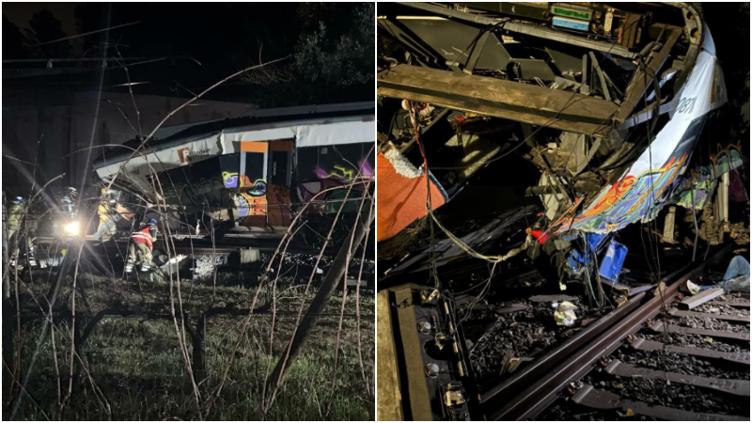 Al parecer, esto se dio debido al derrumbe de un muro de contención que se encontraba cerca de las vías del tren, lo cuál causó que el vehículo terminara por descarrilar por completo.