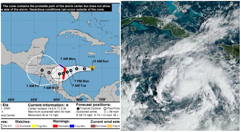 Los meteorólogos esperan que “Eta” se convierta en huracán para el lunes o el martes por la mañana cuando esté cerca de las costas nororientales de Nicaragua y Honduras.