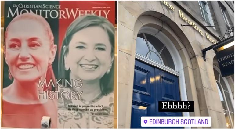 La youtuber Eva María Beristain, originaria de la Ciudad de México, captó en Escocia una revista en el aparador de una libreria, en la cual la portada se dedica a las próximas elecciones en México y se titula "Haciendo Historia". Aparecen dos fotografías de las candidatas Claudia Sheinbaum y Xóchitl Gálvez.