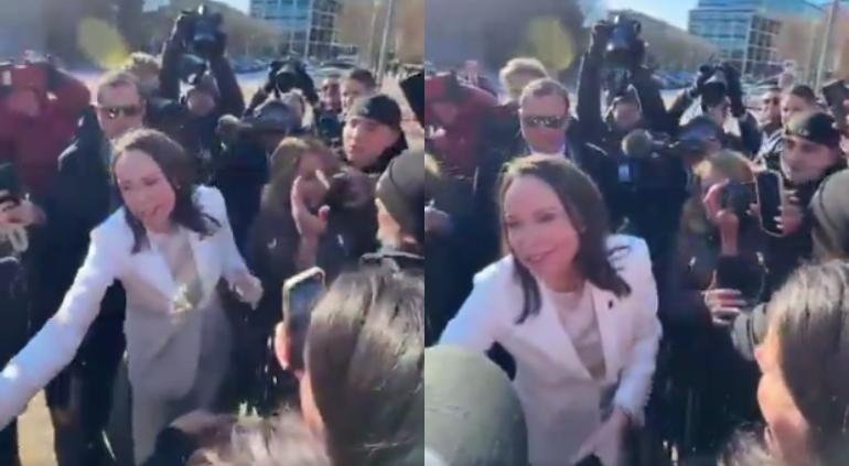 Este jueves, María Corina Machado se reunió con Donald Trump en la Casa Blanca, al salir fue directamente a saludar a los venezolanos que llegaron y dijo que Trump apoya a la libertad de Venezuela.