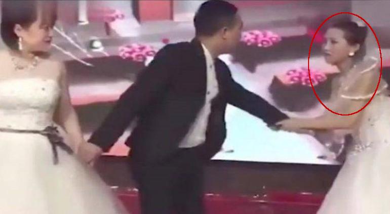 Fue en China donde la exnovia del celebrante irrumpió vestida de blanco, para arrodillarse frente a él.