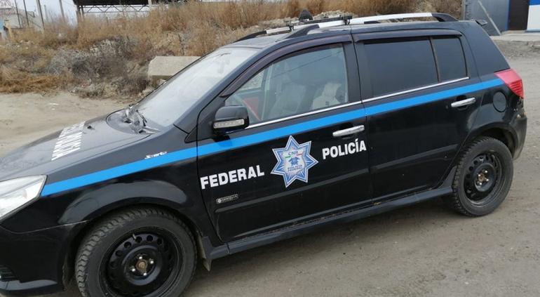 El sujeto puso “FEDERAL POLICiA” al frente y al costado izquierdo de la patrulla, es decir, las palabras al revés y con la “i” minúscula en la penúltima letra.