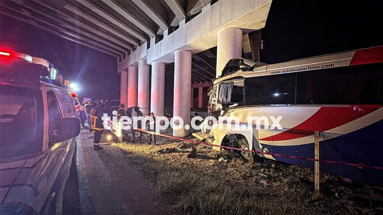 Esta madrugada un camión de la empresa Rhino perdió el control y se estrelló contra una columna del Libramiento Oriente; autoridades confirmaron cuatro muertos, incluido el chofer, y cinco heridos.