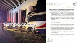 De acuerdo con las primeras indagatorias realizadas por peritos, el chofer perdió el control de la unidad y terminó estrellándose contra una columna de concreto del puente, lo que ocasionó un fuerte impacto en la parte frontal del vehículo.