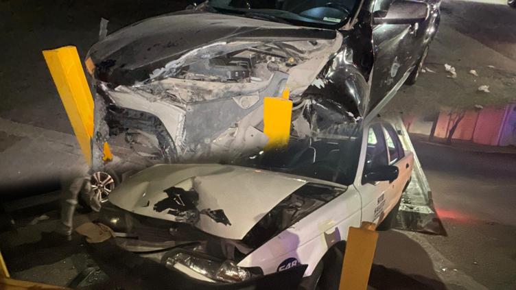 Un taxi del sitio Saucito omitió el alto e impactó una Ford Equinox en Ciprés y Manuel González Cossío, colonia Granjas; tres pasajeros resultaron lesionados.