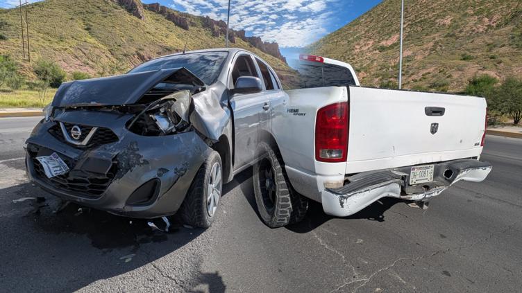 Esta mañana, en el kilómetro dos de la carretera Aldama-Chihuahua dirección este a oeste, un aparatoso choque por alcance dejó a una mujer con lesiones leves.