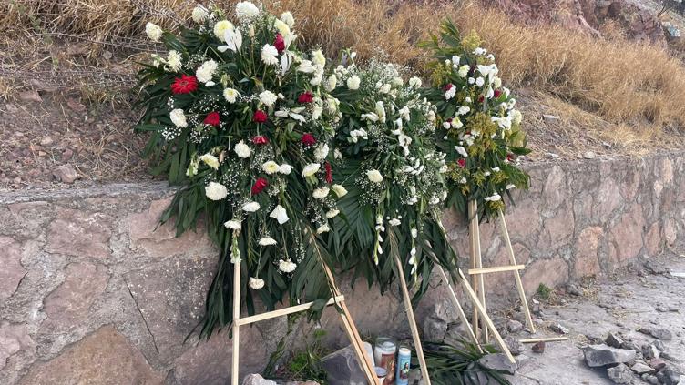 Tres coronas fúnebres honraron a las dos víctimas del accidente en el Cerro Coronel; fueron colocadas sobre la avenida 20 de Noviembre, en el sitio donde la pick up cayó y perdieron la vida.
