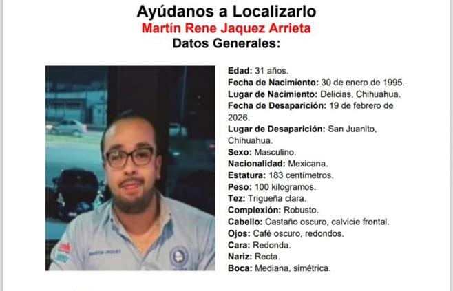 El Fiscal de Zona Occidente, Juan Carlos Portillo, informó que tras darse a conocer la desaparición del ciudadano Martín René Jáquez Arrieta, activaron protocolos de búsqueda que terminaron tarde el viernes 19 de febrero y continuaron temprano este viernes.