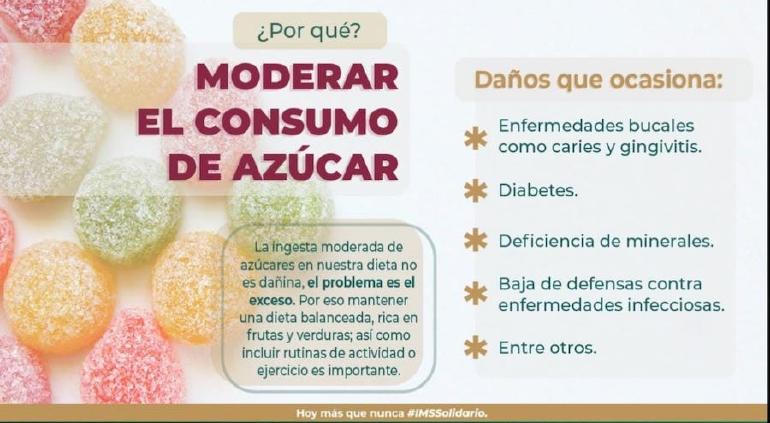 Indicó que entre los daños que ocasiona el consumo desmedido de azúcar destacan los siguientes: