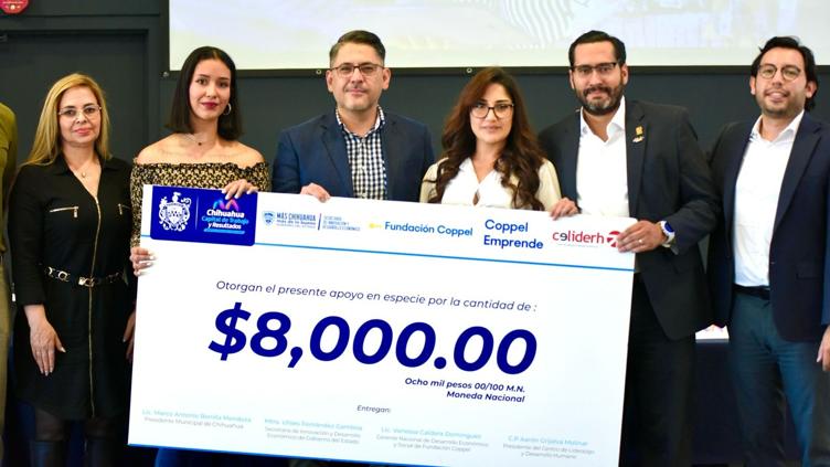 Con el objetivo de impulsar la economía local y fortalecer los proyectos productivos, el Gobierno Municipal de Chihuahua, en colaboración con la Fundación Coppel, el Gobierno del Estado y CELIDERH A.C., realizó la entrega de cheques a 100 emprendedores chihuahuenses como parte del programa “Coppel Emprende Chihuahua”.