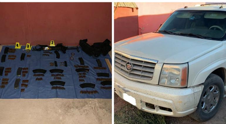 Revientan narcogranja en Aldama; aseguran Escalade, armas y droga