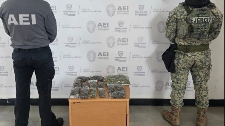 Elementos de la Fiscalía y Ejército Mexicano aseguraron un auto abandonado en las calles Leyes y Topografía en el municipio de Cuauhtémoc, y localizaron medio kilo de marihuana.
