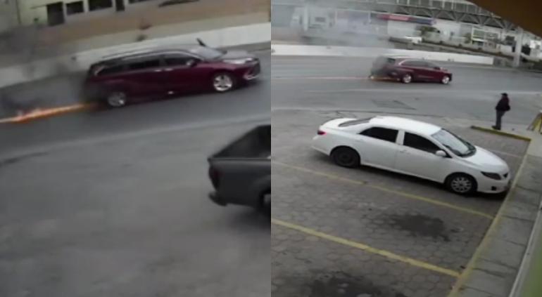 Cámaras de seguridad del China City captaron el momento en que una camioneta Toyota Sienna se incendió cuando circulaba sobre la avenida Teófilo Borunda.