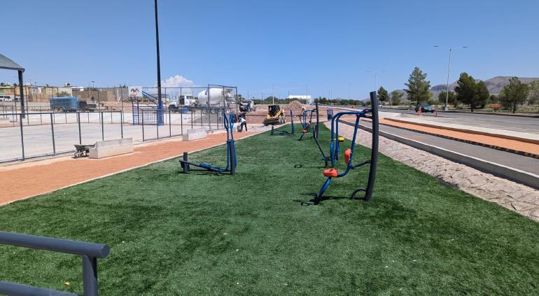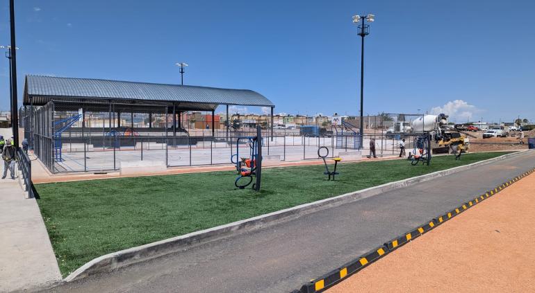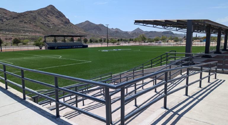 Además tanto la cancha de fútbol, como zonas de juegos de esta deportiva cuentan ya con pasto sintético, que da gran color a los alrededores.