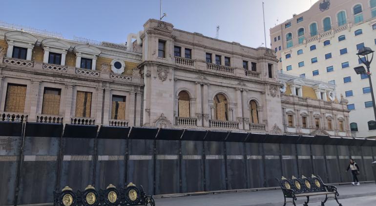 En el marco de las manifestaciones que se darán por el movimiento del 8M, sorprendió que desde muy temprana hora colocaron alrededor de Palacio Municipal vallas de metal.