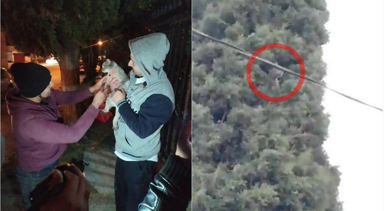 Así rescataron a gatito atrapado en árbol a 8 metros de altura: VIDEOS