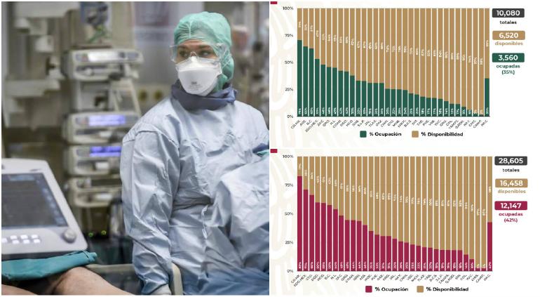 De acuerdo a la gráficas presentadas la noche del domingo, a nivel nacional, la ocupación hospitalaria general era del 42%, esto marca un aumento de un punto porcentual en tanto al reporte del viernes.