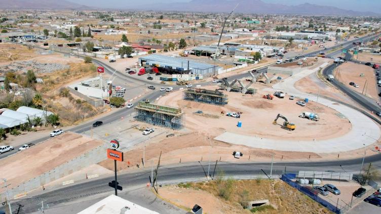 Como parte de la estrategia para mejorar la movilidad al oriente de la capital, el Gobierno Municipal avanza en la construcción del Paso Superior ubicado en la carretera Chihuahua–Aldama y avenida Fuerza Aérea.