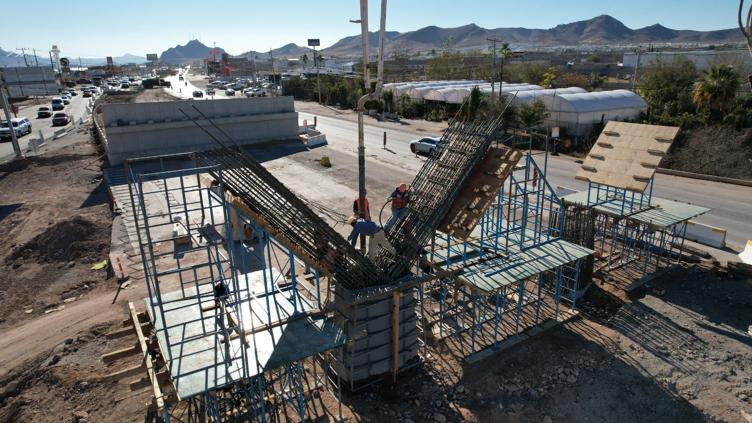 El Gobierno Municipal de Chihuahua informó que continúan los trabajos de construcción del Paso Superior ubicado en el cruce de la carretera Chihuahua–Aldama y la avenida Fuerza Aérea, obra que actualmente registra un avance global del 14 por ciento.