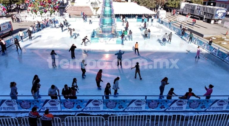 Con un costo de 120 pesos por persona, ofrecen una hora de diversión sobre hielo en el corazón de la ciudad de Chihuahua.