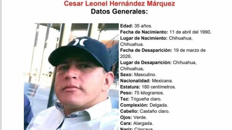 La Fiscalía solicita ayuda para encontrar a César Leonel Hernández Márquez de 35 años, quien desapareció el 19 de marzo del presente año luego de salir de su casa en la colonia San Patricio. Por ahora se desconoce su paradero.