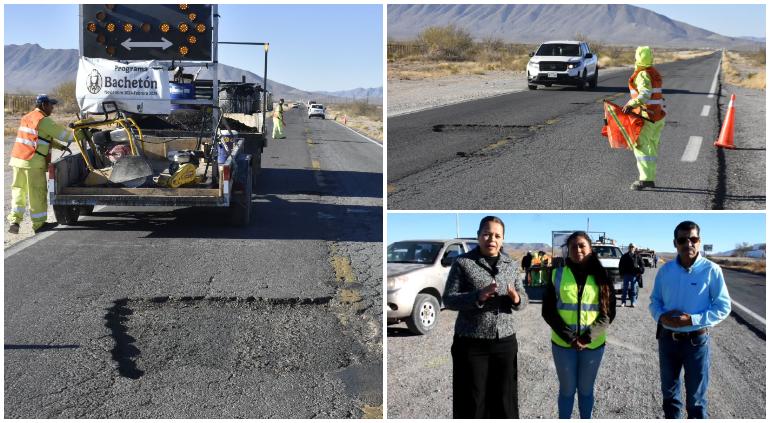 Se trata del bacheo de emergencia que el pasado sábado anunciaron los alcaldes de Aldama, Coyame y Ojinaga que empezaría justo este lunes ante el malestar social por los accidentes que han cobrado vidas, generado lesiones o provocado daños cuantiosos a habitantes y visitantes.