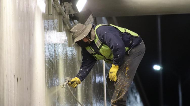En total, se intervinieron 3 mil 350 metros cuadrados de superficie, utilizando 50 cubetas de pintura, con lo que se logró renovar completamente la apariencia del túnel, otorgándole un entorno más limpio y uniforme.