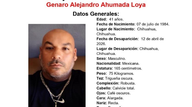 Autoridades estatales activaron la búsqueda de Genaro Alejandro Ahumada Loya, de 41 años de edad, quien fue reportado como desaparecido el pasado 12 de abril de 2026 en la ciudad de Chihuahua.