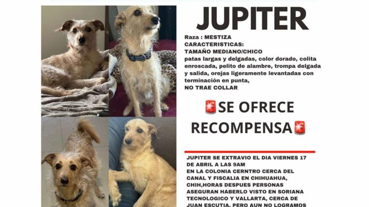 Los dueños de “Jupiter”, un perrito mestizo, piden la ayuda de la ciudadanía para su localización, luego de que se extraviara el pasado viernes 17 de abril en la ciudad de Chihuahua.