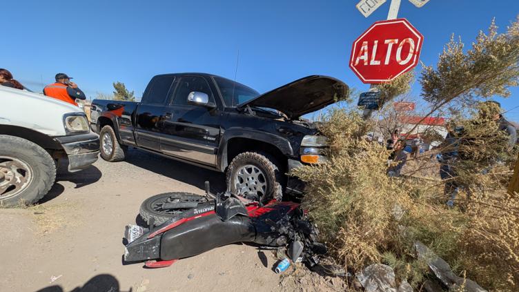En la colonia CDP una Chevrolet Silverado pasó el alto en el cruce de Ciudad Jiménez; fue embestida por un vagón en movimiento y una motocicleta resultó dañada.