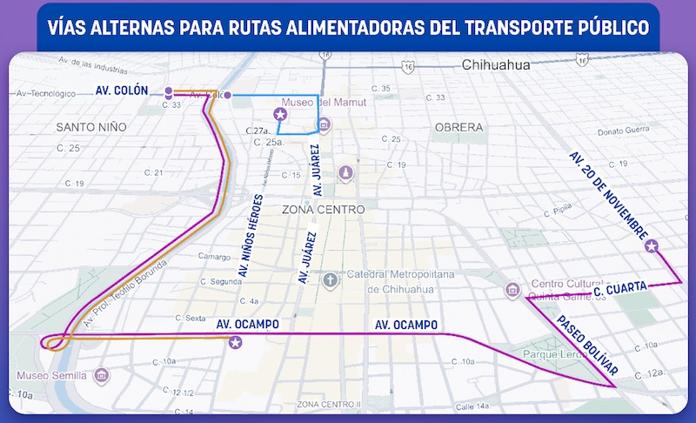 El trayecto será similar: Juárez, calle 27, Teófilo Borunda Norte, glorieta Ocampo, avenida Ocampo y posteriormente Niños Héroes, donde volverá a su ruta normal.