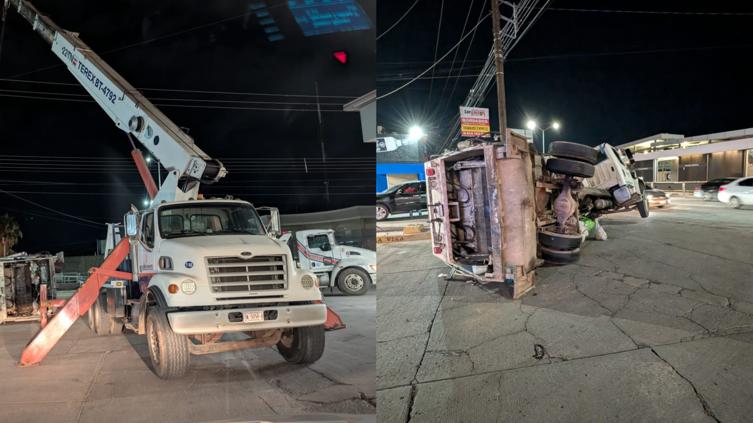 La dirección de Servicios Públicos Municipales informó sobre el incidente registrado la tarde ayer, cuando un camión recolector se volcó mientras era remolcado por una grúa.