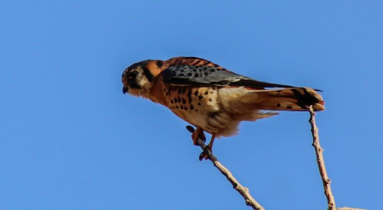 Por medio de redes sociales fueron compartidas fotografías de un pajaro Cernícalo Americano en el Río Sacramento - Sierra de Nombre de Dios.