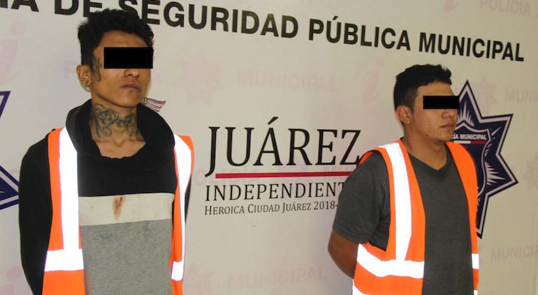 Dos presuntos integrantes de la pandilla Artistas Asesinos fueron detenidos en la colonia Parajes del Sur en posesión de droga y cartuchos.