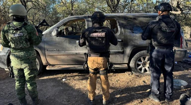 Elementos de la Fuerza Especial SWAT, junto con militares de Sedena y elementos tanto de la Guardia Nacional como la Agencia Estatal de Investigación de Fiscalía, se involucraron en un recorrido de cerca de cinco kilómetros hasta que encontraron la camioneta GMC negra.