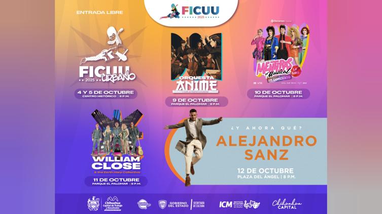 El Instituto de Cultura, anunció que mañana sábado 4 de octubre dará inicio el Festival Internacional de la Ciudad de Chihuahua (FICUU), uno de los eventos culturales más importantes de la capital, que reunirá a artistas locales, nacionales e internacionales con actividades gratuitas para toda la ciudadanía.