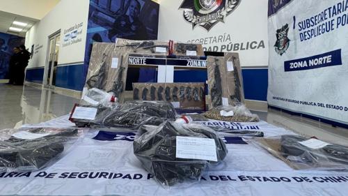 La Policía del Estado destacó la detención de dos menores de edad originarios de Ciudad Juárez, en compañía de otras cuatro personas, tras encontrarlos en posesión de un arsenal, incluida una ametralladora calibre 50.
