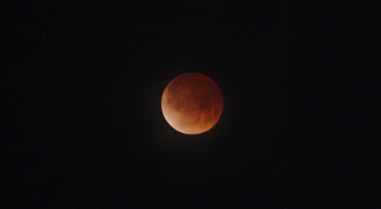 Luego de que la Luna llena reluciera entre nubes sobre el cielo por la noche, un de horas antes del amanecer, el satélite natural se "vistió" de rojo, debido a que es eclipsada por la Tierra.