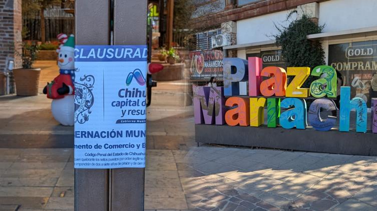 El Gobierno Municipal clausuró la Plaza del Mariachi en Chihuahua por operar un bazar dentro de las intalaciones sin el permiso correspondiente; el sitio permanece cerrado con sellos de clausura hasta que se resuelva la irregularidad.